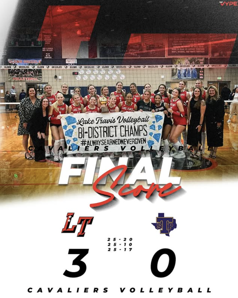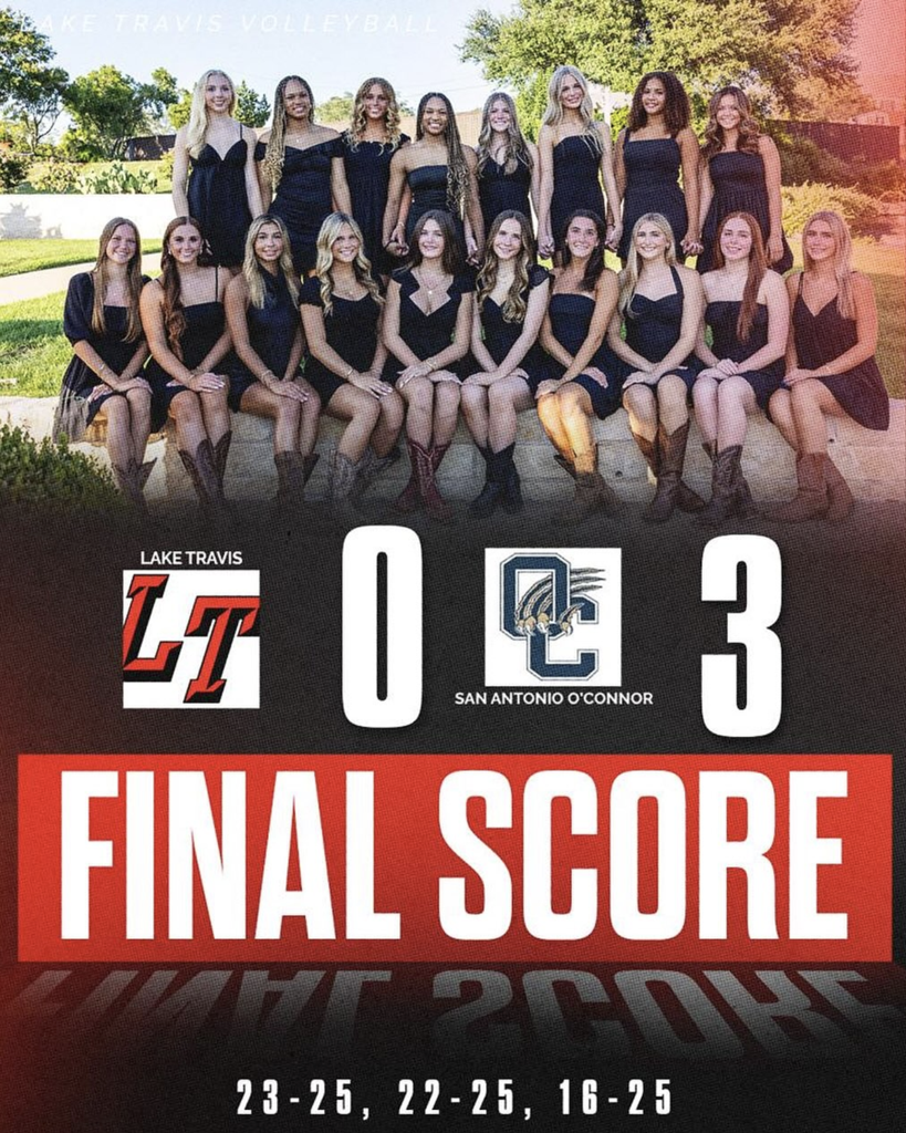 Lake Travis (15-4) went through the first two days of pool play 5-1 and advanced to the Gold bracket. On Saturday, LT first knocked off San Antonio Antonian 23-25, 25-22, 25-15. Then, LT emerged victorious against New Braunfels in the semifinals 25-23, 25-23.