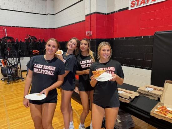 The Lake Travis Cavaliers of today welcomed the Cavs of tomorrow with a huge pizza party, photo session and pep talk as LTVB continues to grow the game we all love.